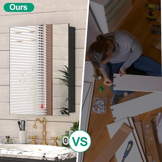 - 【Pre-Assembled Medicine Cabinet】The mirrored medicine cabinet come with pre-assembled, it just need to mark the points on the wall and tighten the screws, no need to manually assemble the entire mirror cabinet.