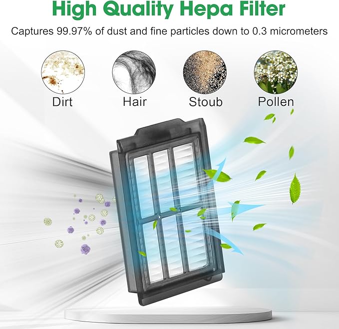 - Efficient Cleaning : The Roomba 505 / 405 filter part captures 99.99% of particles as small as 0.3 microns. The roomba 405 microfiber mop pad delivers exceptional water absorption and cleaning power, effortlessly removing all stains from floors. Both mop pads and filters are resuable and washable.