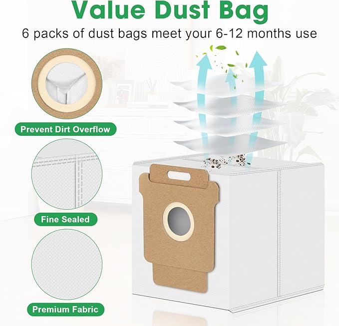 - Premium Vacuum Bags : Roomba 505 Replacement dust bags are made from four layers of premium meltblown fiber, ensuring leak-proof performance. 6 large capacity dust bags cover 6 to 12 months replacement needs.