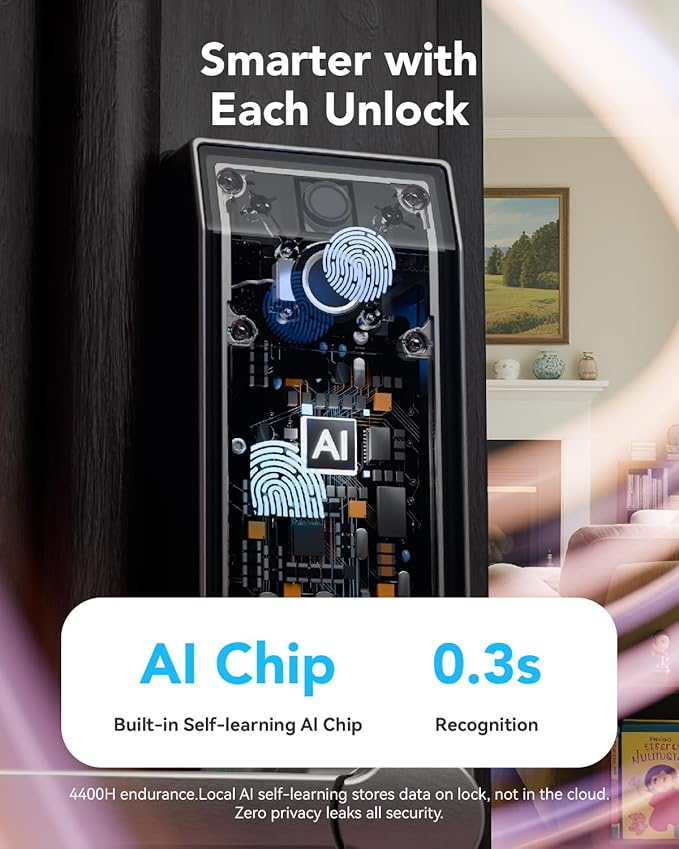 - [BANK-GRADE SECURITY BIOMETRIC FINGERPRINT SENSOR] Blusafe fingerprint door locks utilize an advanced 3D biometric fingerprint sensor to provide bank-grade security for your home. Unlike optical fingerprints, the fingerprint door lock accurately recognizes your fingerprint in 0.5 seconds with a resolution of up to 508 dpi, preventing you from unlocking the door by copying your fingerprint. With a fingerprint capacity of up to 100, you can easily share it with family, friends, dog walkers, housekeepers and more.