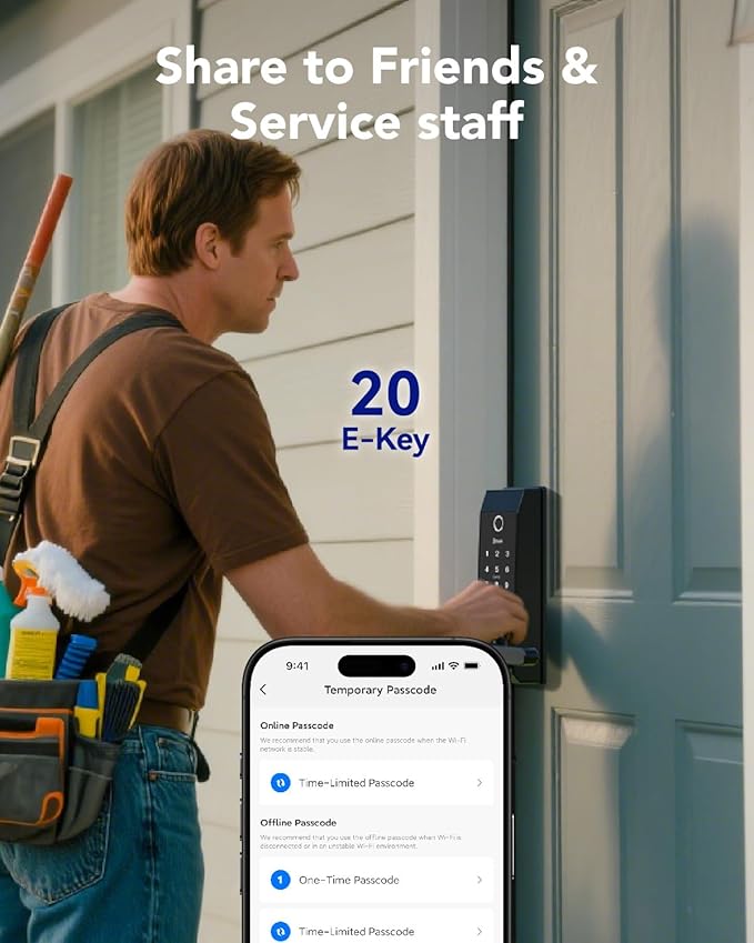 - 【Professional Support】 Backed by professional customer support with a 1-year warranty, technical assistance, and 24/7 expert service—ensuring a worry-free experience from installation to long-term use. The smart lock set includes a Micro-USB emergency power port and two hidden mechanical keys for backup unlocking.