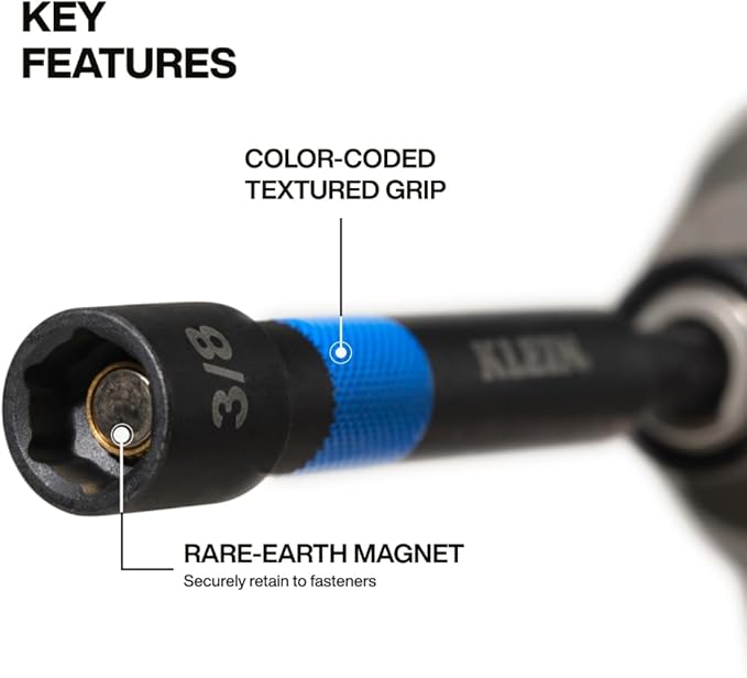 Klein Tools 32946S 4-Inch Power Nut Setters 6-Piece Set, Impact-Rated, Magnetic, Color-Coded, SAE