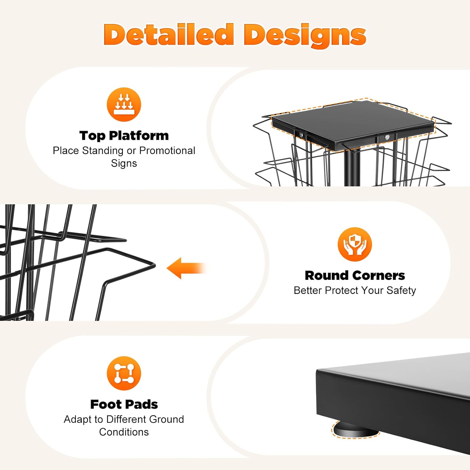 - 【Modern & Minimalist Design】The clean black lines and functional design blend into modern interiors, from retail stores and libraries to offices and exhibition halls. This rotating magazine rack not only organizes your materials effectively but also enhances the visual appeal of your space