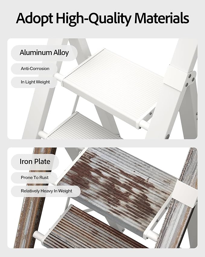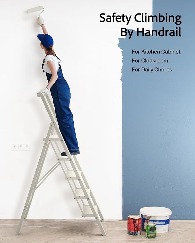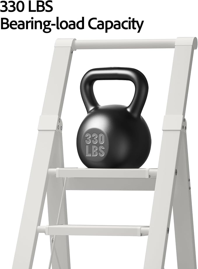 5 Step Ladder, Lightweight Folding Step Stool with Convenient Handgrip,Aluminum 330lbs Capacity Step Ladder for Office,Household,Kitchen(White)