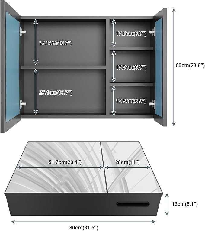 - Space Saving: Our modern mirror cabinet have 5 shelves in 2 sizes. This generous storage allows you to neatly organize towels, tissues, toothbrushes, skincare products, and medicines. With our mirror cabinet, you can keep your bathroom looking tidy and organized, making it a perfect addition to your home!