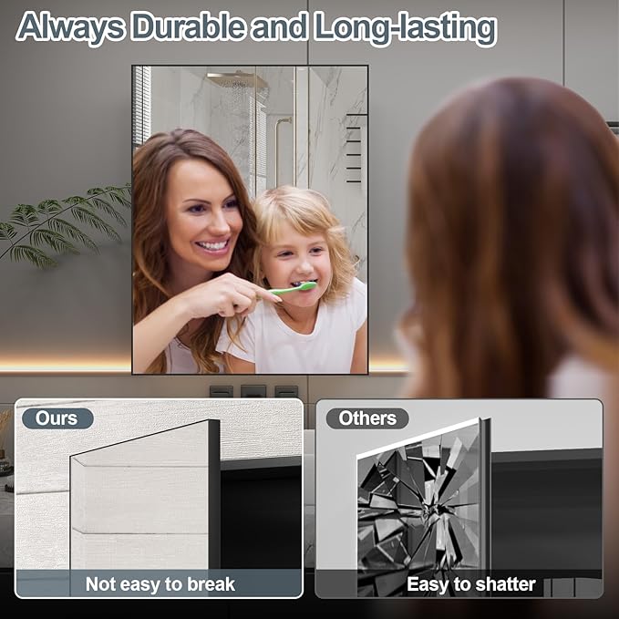 - Space Saving: Our modern mirror cabinet have x shelves. This generous storage allows you to neatly organize towels, tissues, toothbrushes, skincare products, and medicines. With our mirror cabinet, you can keep your bathroom looking tidy and organized, making it a perfect addition to your home!