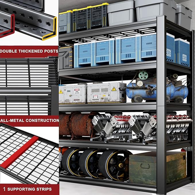 - 【5 Tier 65 "W x 79"H x 30"D Wide Storage Shelves heavy duty】Large heavy duty garage shelving is suitable for garage, warehouse, basement,Library, commerical, industrial etc. The 5 tier metal shelves for storage shelves expands your storage space, makes your home clean .